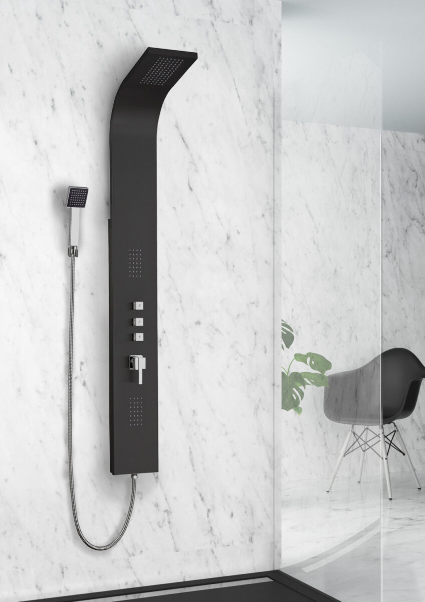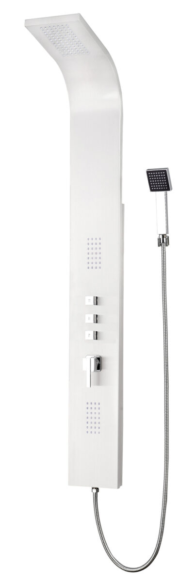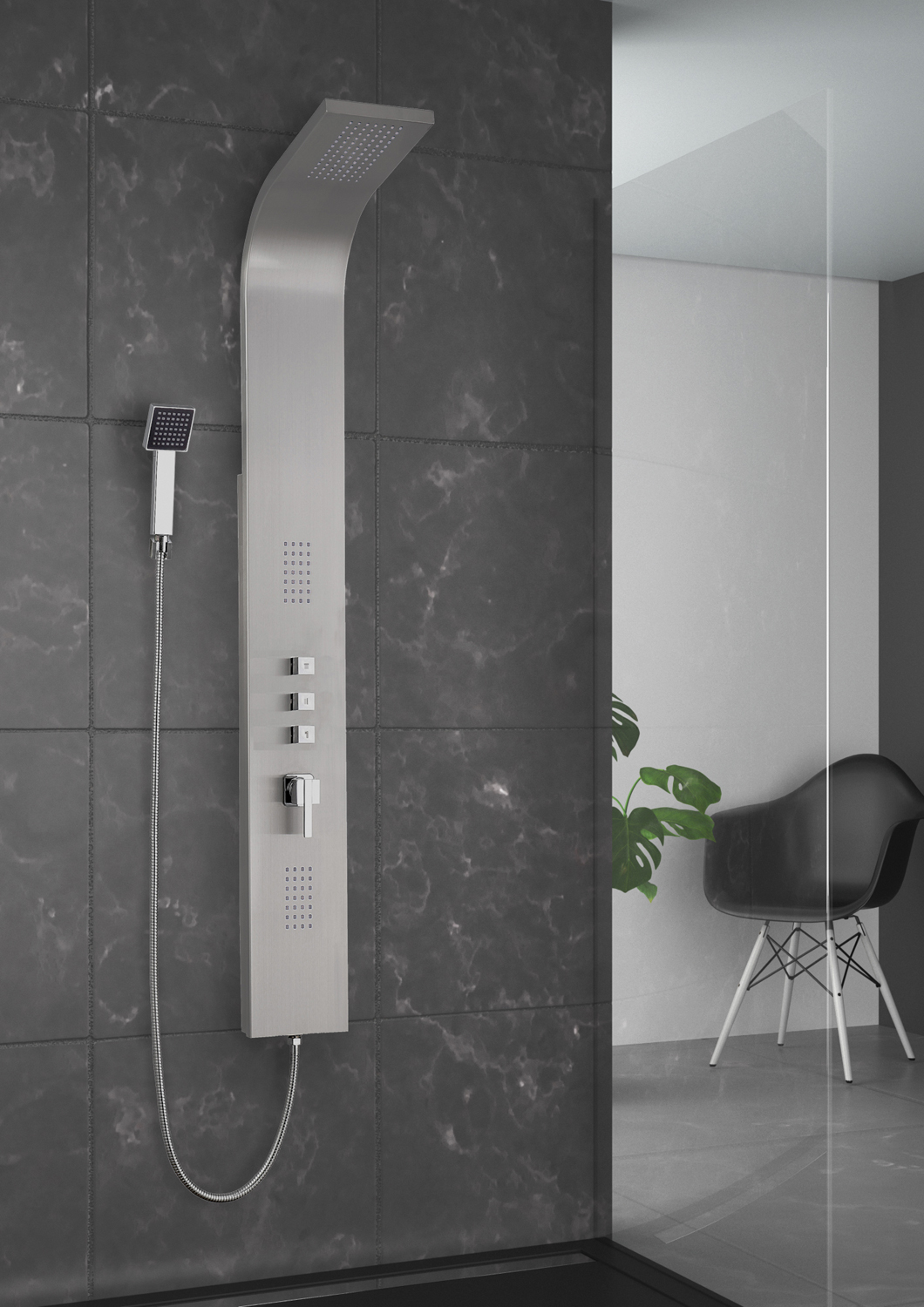 Corps en acier inoxydable 304 de 1.2mm d’épaisseur – Tête de douche intégrée – Lèvre d’étanchéité inférieur et supérieur – Cartouche sedal (CE) – Douchette en ABS – Flexible double sertissage – 2 Jets intégrés – Commandes indépendantes 3 fonctions – Anticalcaire transparent – *Montage de face ou d’angle