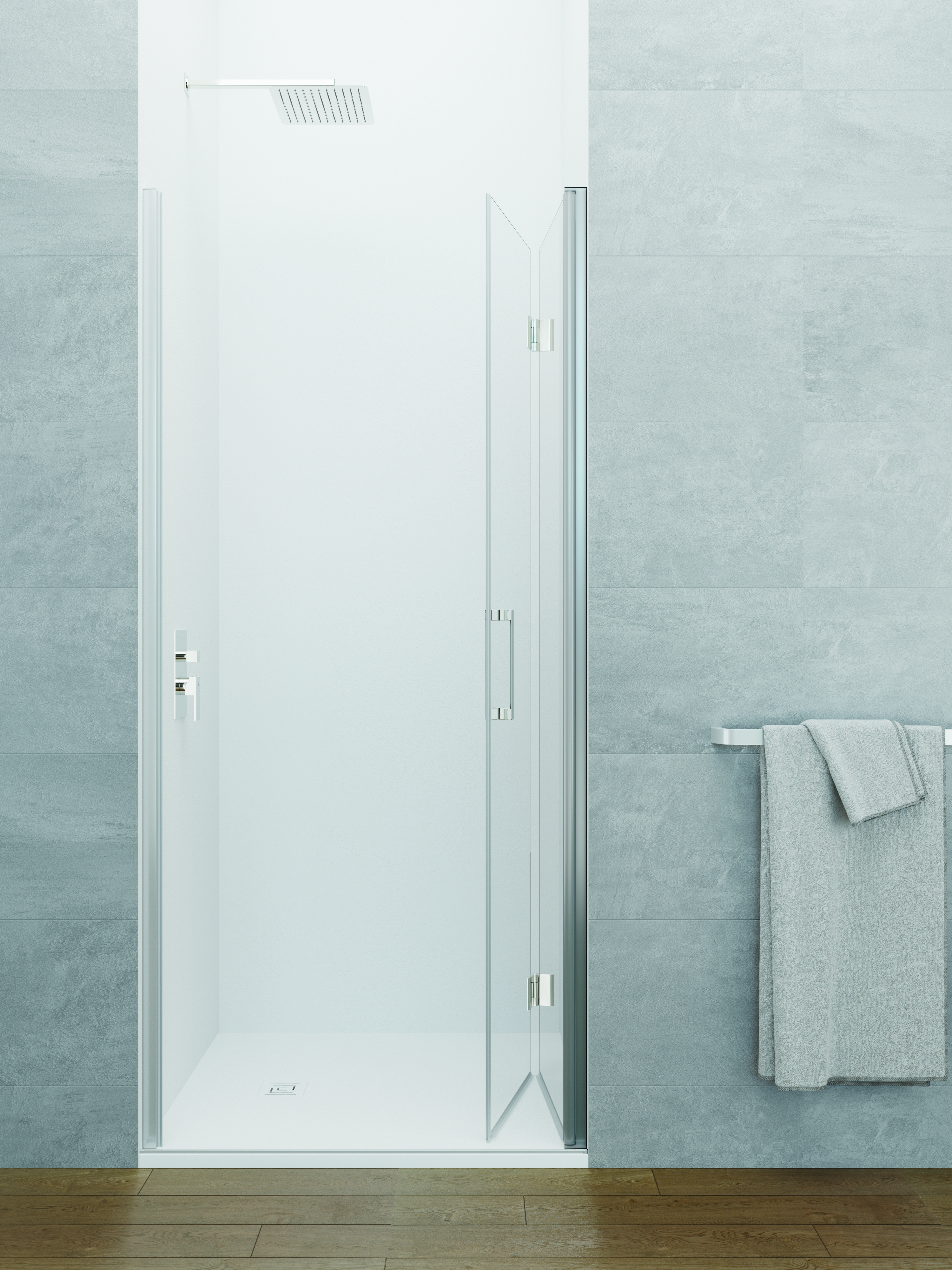 Système repliable permettant un gain d’espace, parfait pour les configurations de douche dans des niches ou des espaces restreints.