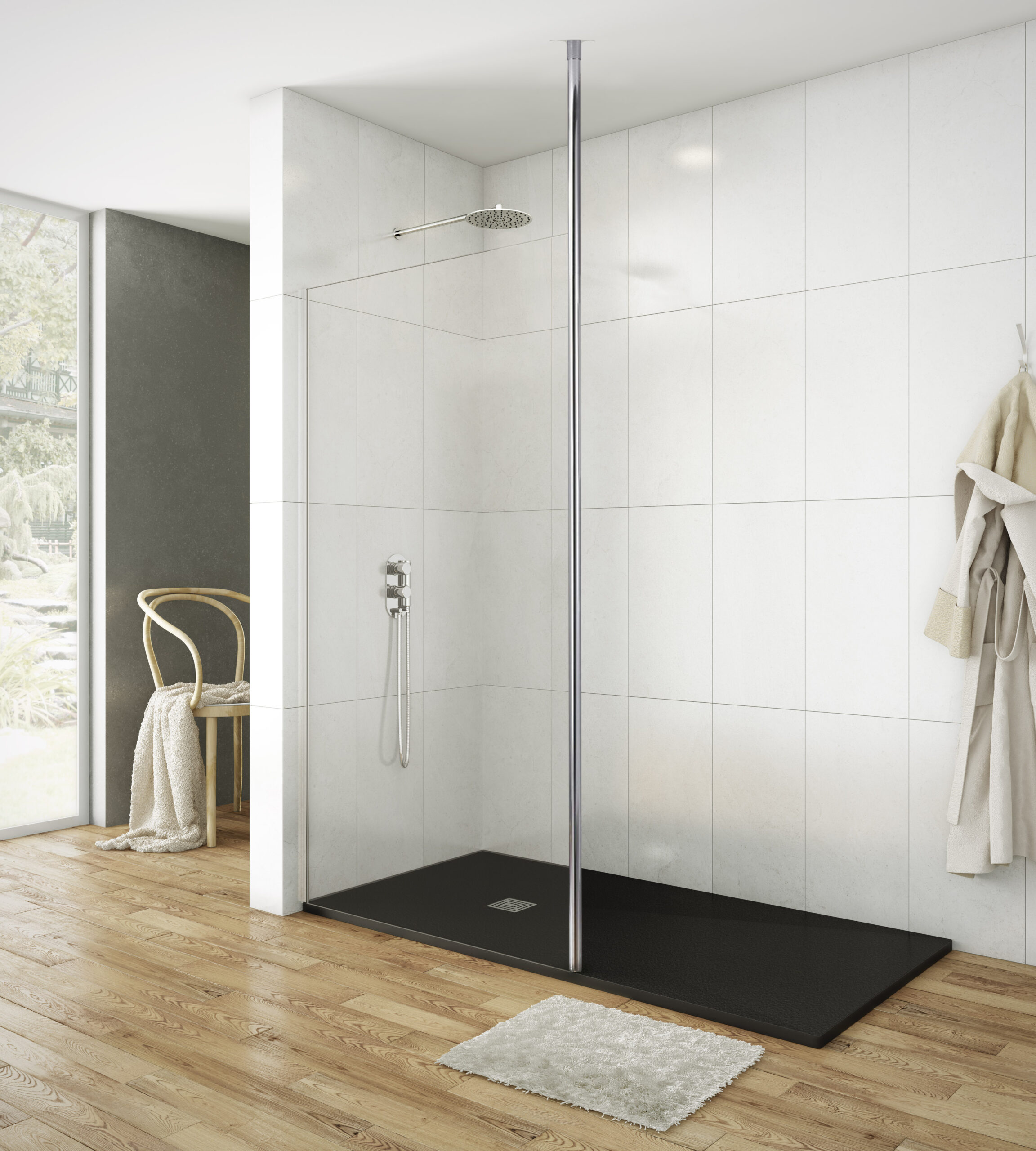 Facile à installer, le mât de renfort sol-plafond assure une fixation solide et sécurisée, améliorant la fiabilité de l’ensemble de la paroi de douche. Il est particulièrement recommandé pour les configurations ouvertes ou minimalistes, où la stabilité et la sécurité sont essentielles.